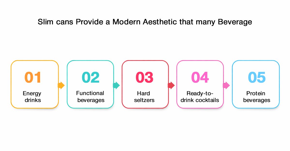 Slim cans provide a modern aesthetic that many beverage categories now prefer, including: