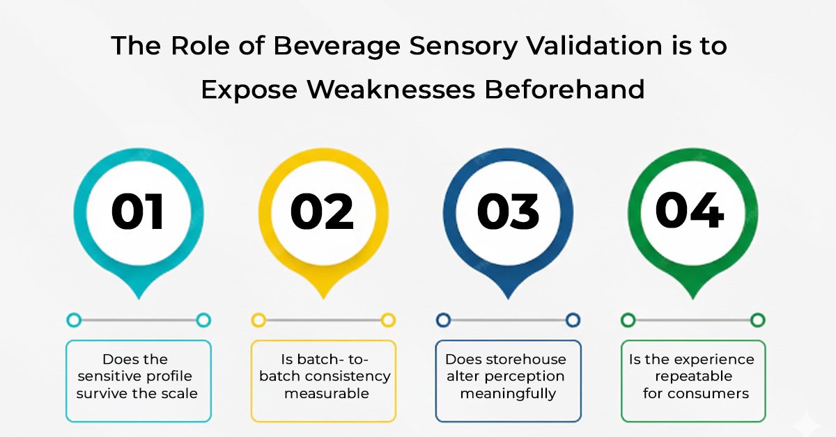 The purpose of sensory evaluation must shift from approval to challenge. The role of beverage sensory validation is to expose weaknesses beforehand, when correction is still affordable.