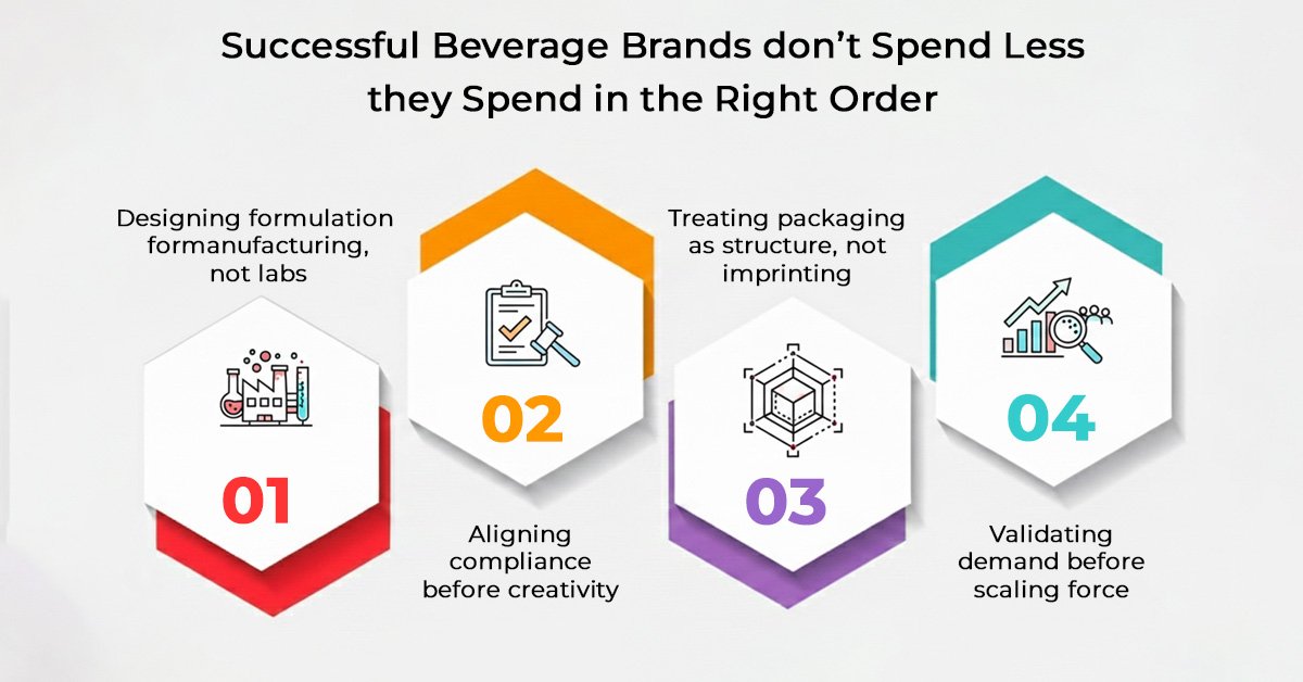 Across early-stage beverage ventures, it’s common to see ₹30–50 lakhs spent before a single marketable sale, not because founders are careless, but because the sequence of decisions is flawed. Money leaks through formulation resets, compliance corrections, packaging changes, and product misalignment, each appearing minor in isolation, but disastrous in total.