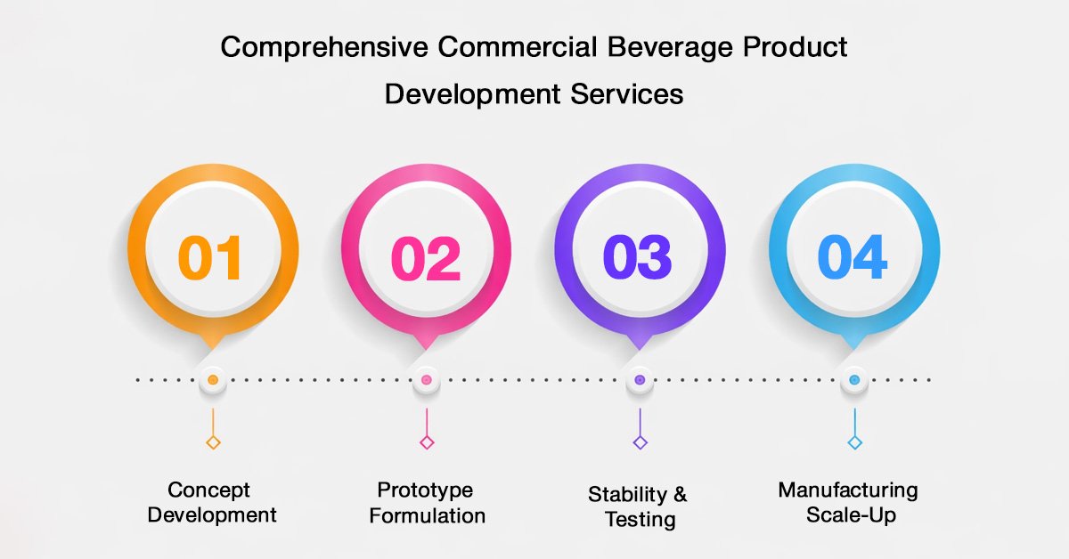 Commercial beverage product development services include concept creation, formulation, stability testing, and manufacturing transfer.