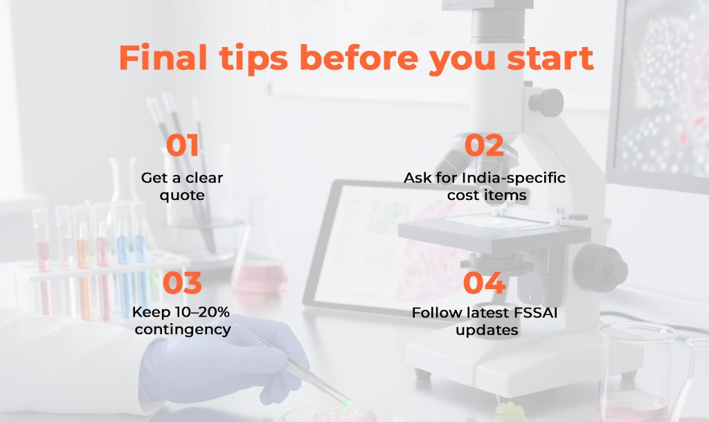 See FSSAI rules for lab and testing requirements.