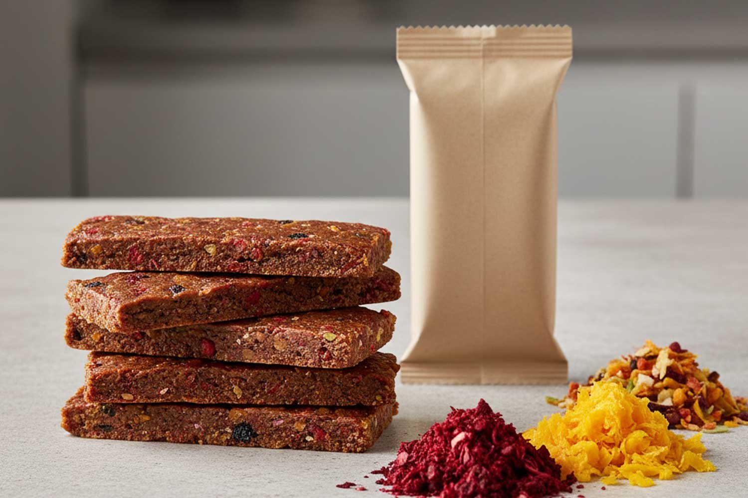 A sustainability startup wanted to create snack bars from upcycled fruit pulp but faced moisture issues, crumble, and inconsistent taste.
