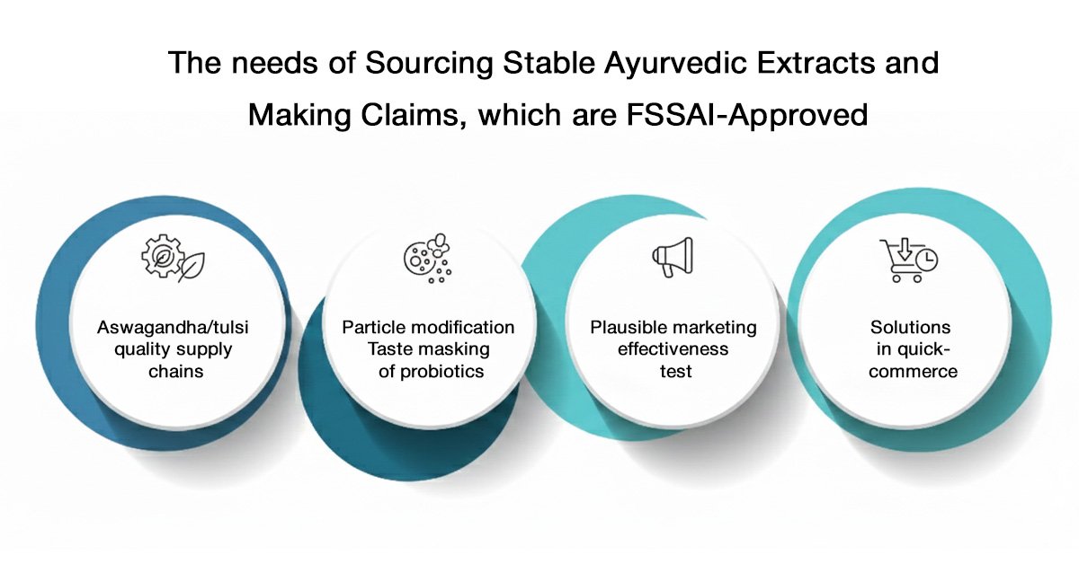 Experts like Foodsure fill the needs of sourcing stable Ayurvedic extracts and making claims, which are FSSAI-approved.