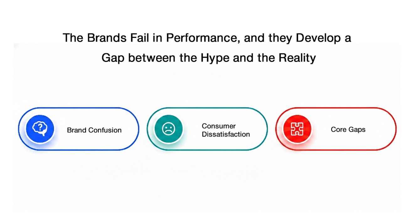 However, the brands fail in performance, and they develop a gap between the hype and the reality.