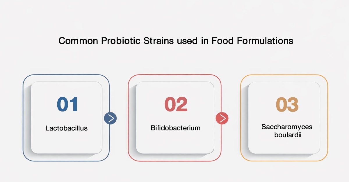 Common probiotic strains used in food formulation include: