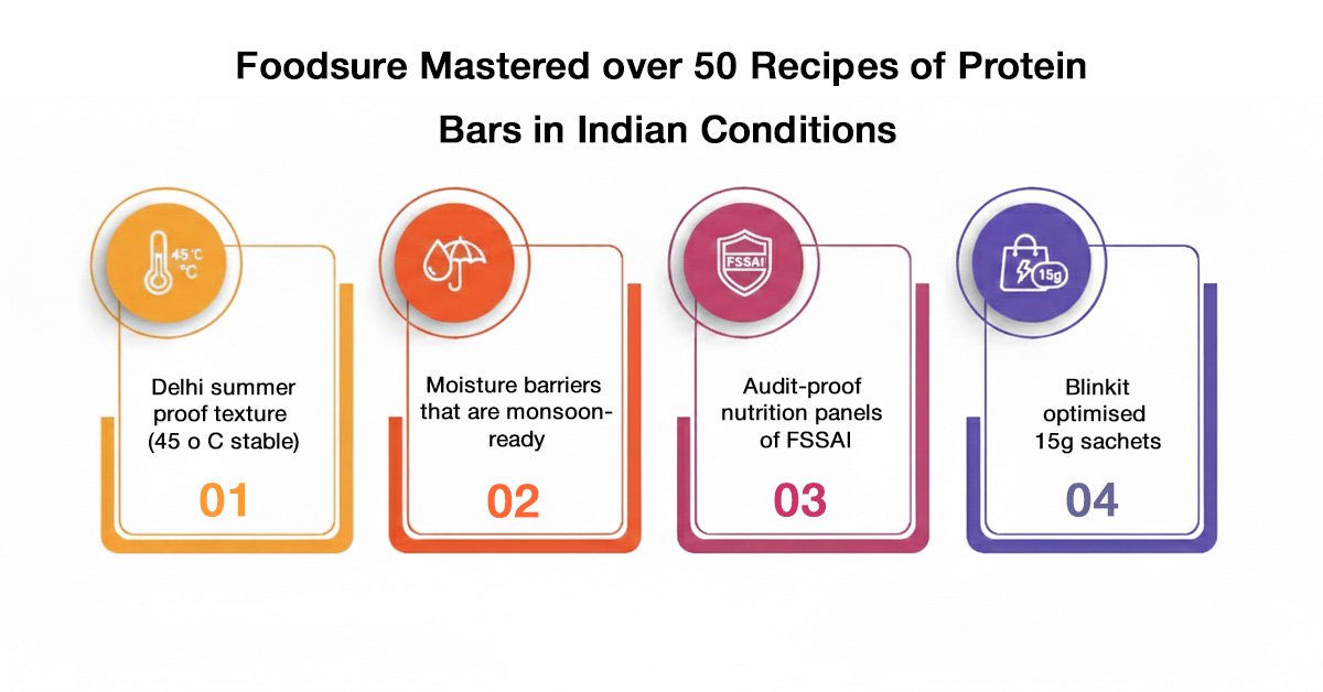 Foodsure mastered over 50 recipes of protein bars in Indian conditions: